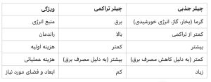 ۳. مقایسه چیلرهای تراکمی و جذبی